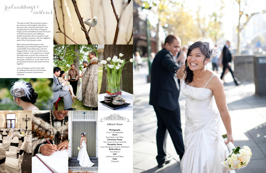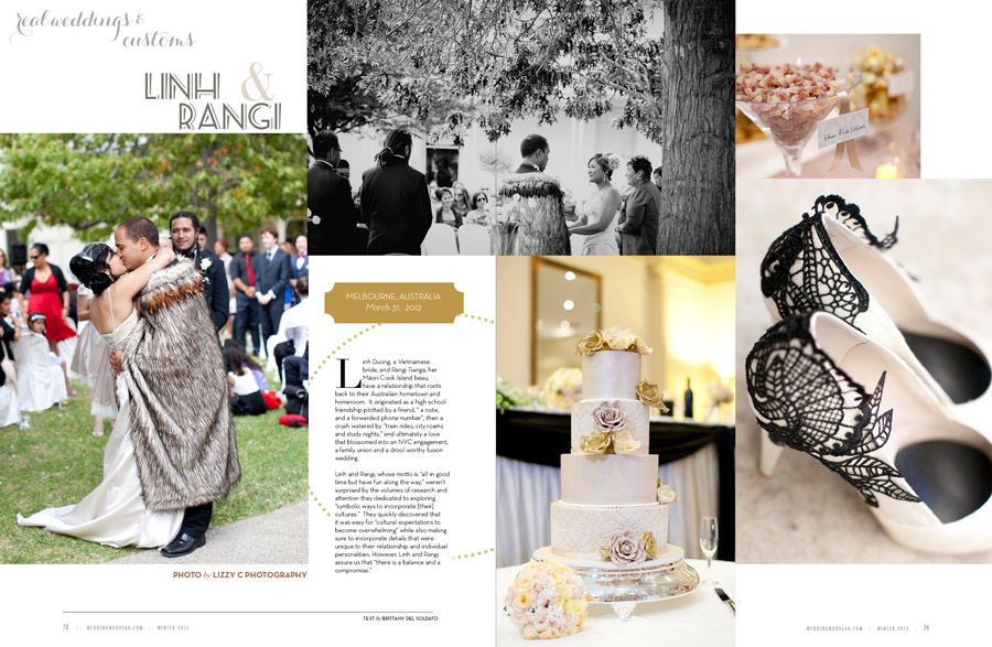 It was really lovely to be approached by American Wedding, Nouveau to feature Linh and Rangi‘s wedding in their magazine! It has been featured in their current holiday issue!